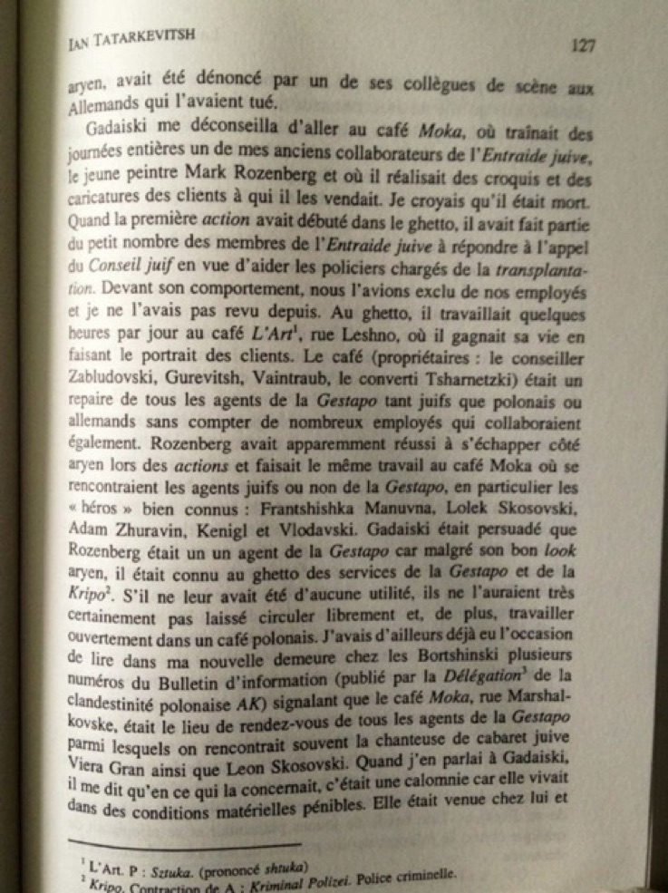 Dans cet ouvrage, il raconte par le menu le quotidien de cette claustration, les pratiques abusives de la police juive, le comportement de certains de ses « frères » qui cherchent à profiter de la situation de moins bien lotis qu'eux, les trahisons de certains juifs qui collaborent avec les Allemands.